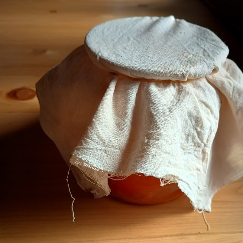 皮を剥いて消毒した瓶に詰め込んで、空気の通るガーゼで蓋をするだけ。