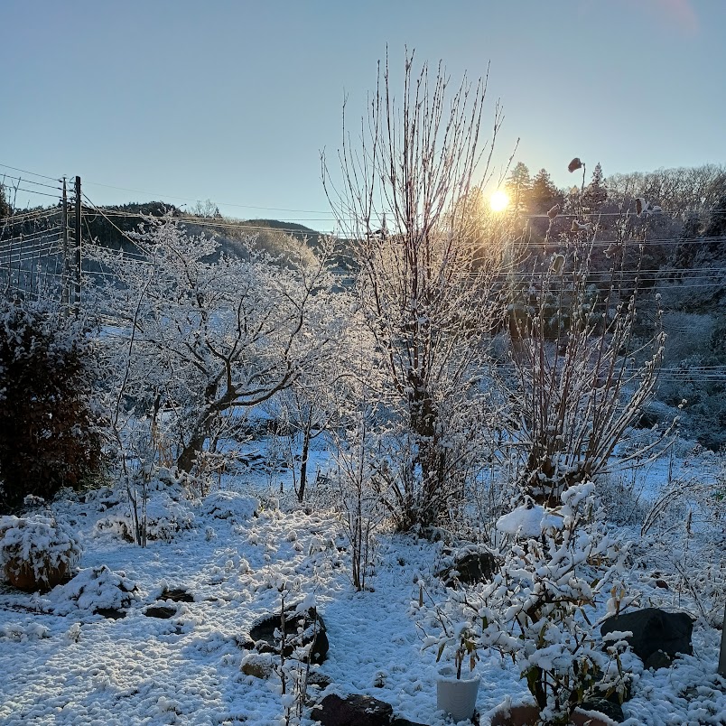 朝起きると昨夜から降り始めた雪が、銀世界とまではいかないけれど、いつもの風景が白く染まっていた。